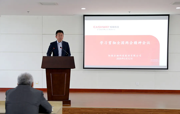 2025-06-303月12日下午,在全國兩會勝利閉幕后,恒銀科技第一時間召開學習貫徹全國兩會精神宣講會,全國政協委員,公司黨委書記、董事長江浩然宣講全國兩會精神。會議由黨委副書記梁曉剛主持,公司領導班子成員、在津總部中層管理人員等參加。